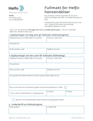 Last ned gratis helfo fullmakt med veiledning om nødvendig legitimasjon, inkludert førerkort, nasjonalt ID-kort eller pass for gyldig signatur og fullmaktsopplysninger.