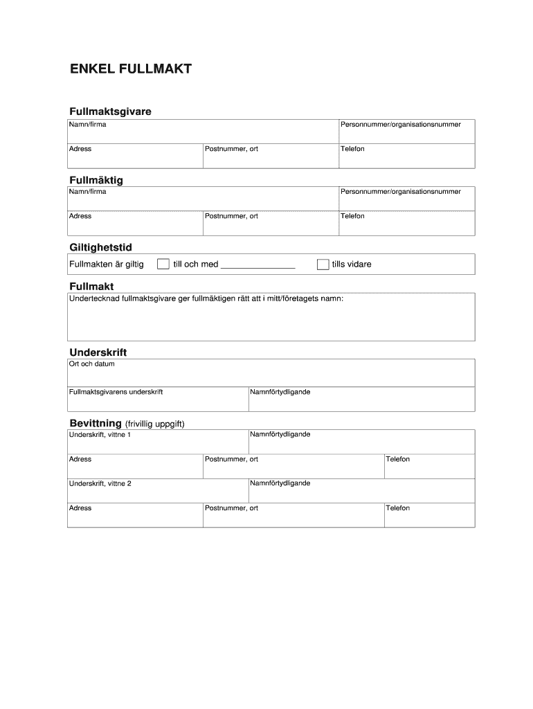 Last ned fullmakt Sverige gratis i PDF