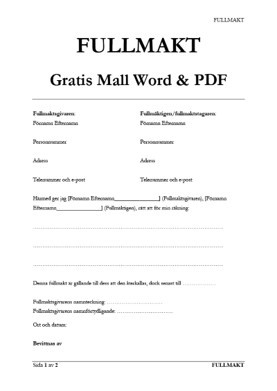 Last ned gratis gjensidig fullmakt-mal for enkel og trygg fullmaktsgiving mellom parter. Perfekt for personlig eller forretningsbruk, klar til bruk og enkel å tilpasse.