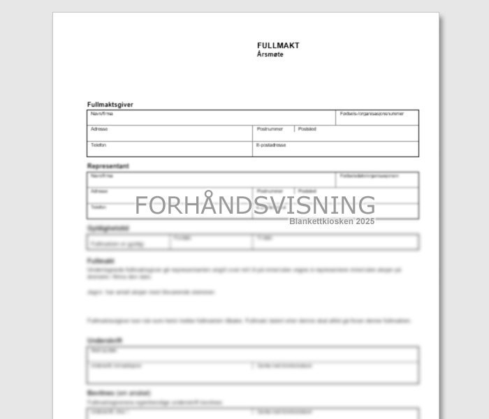 Last ned gratis fullmakt for å stemme på generalforsamling. Enkel, juridisk korrekt mal som sikrer din stemmerett selv om du ikke kan delta personlig.